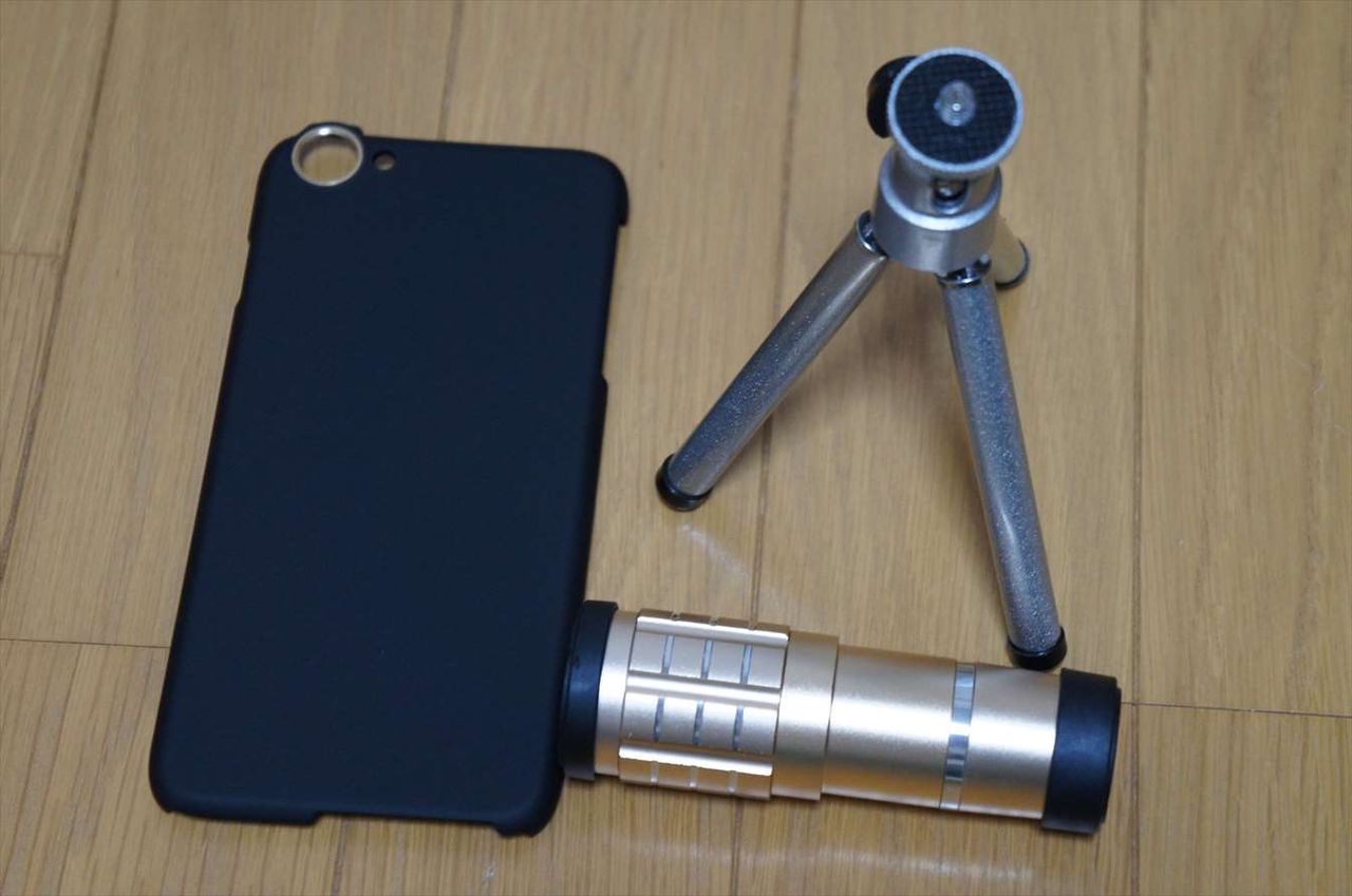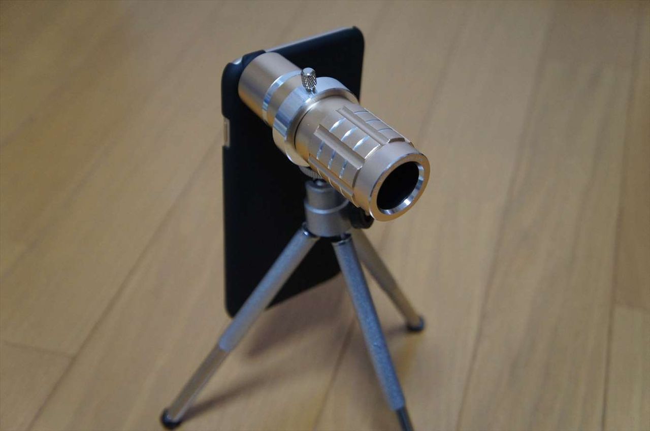iPhoneを専用ケースに入れ、そのケースにレンズを取り付けます。