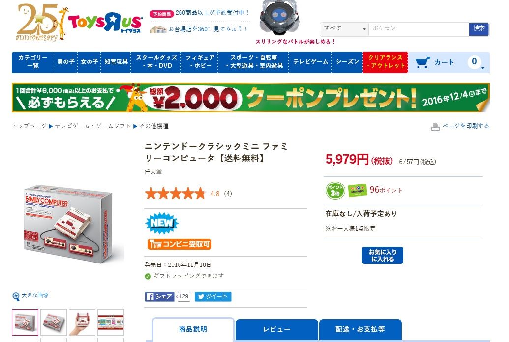 2016年11月29日|日記 ニンテンドークラシックミニ販売情報!!! ニンテンドークラシックミニ ファミリーコンピュータ【送料無料】今は在庫なしですが、12月3日19時販売開始です。 mixiチェック 「日記」カテゴリの最新記事 コメント コメントフォーム 名前 コメント 評価する リセット リセット 顔 星 投稿する 情報を記憶