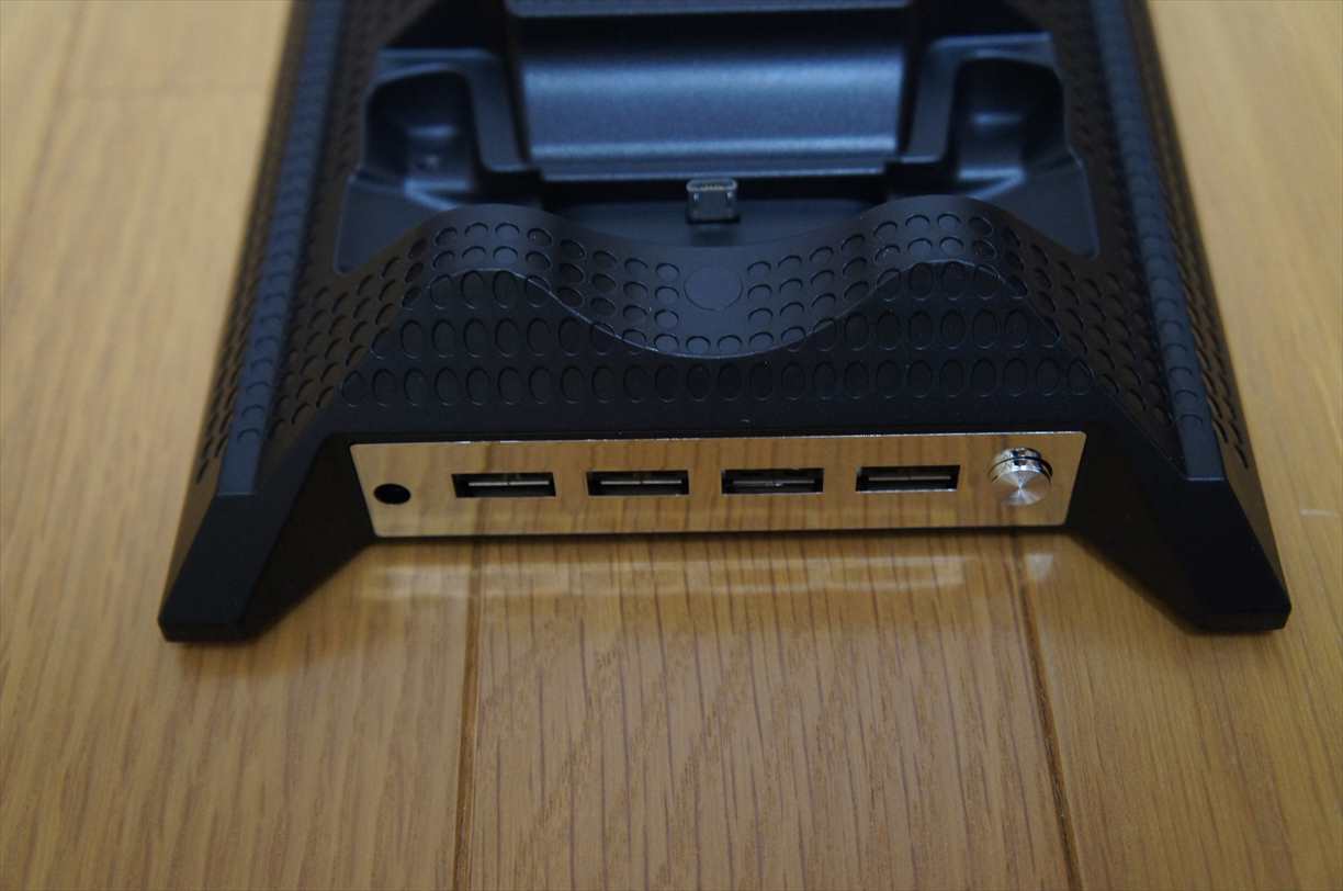 平置き専用と言える製品ですが、4ポートのUSBハブと2台のコントローラーが充電できるので、クーラー機能を使わなければ、Xbox本体の縦置きにしても構わないでしょう。