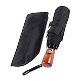HIIRAGI(ヒイラギ) 天然木グリップ 自動開閉 折り畳み傘 8本骨傘 収納ケース付 AE0011 ブラック 8本骨