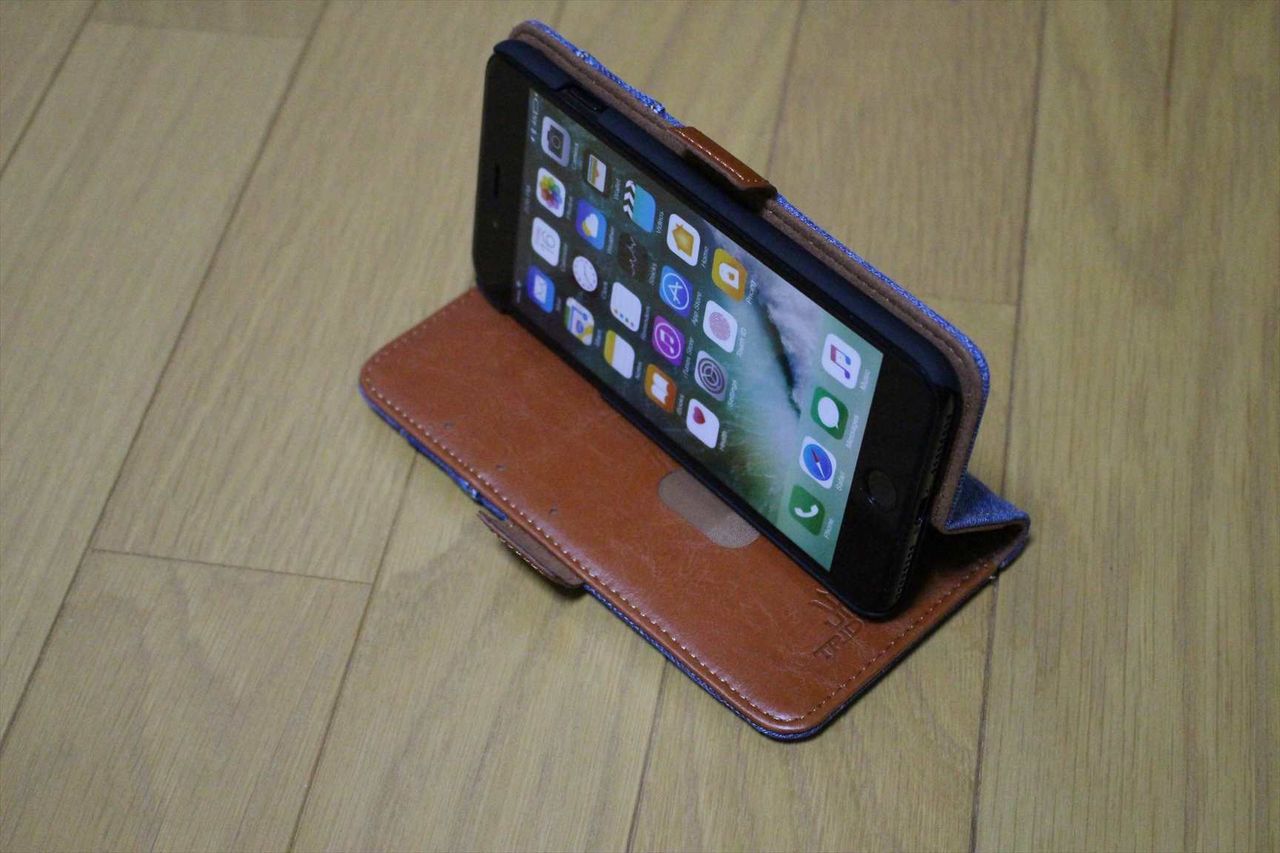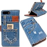 本格デニム iPhone7 plus ケース 手帳型 (アイフォン7 プラス) マグネット式、スタンド機能、カード収納 人気アイホンケース