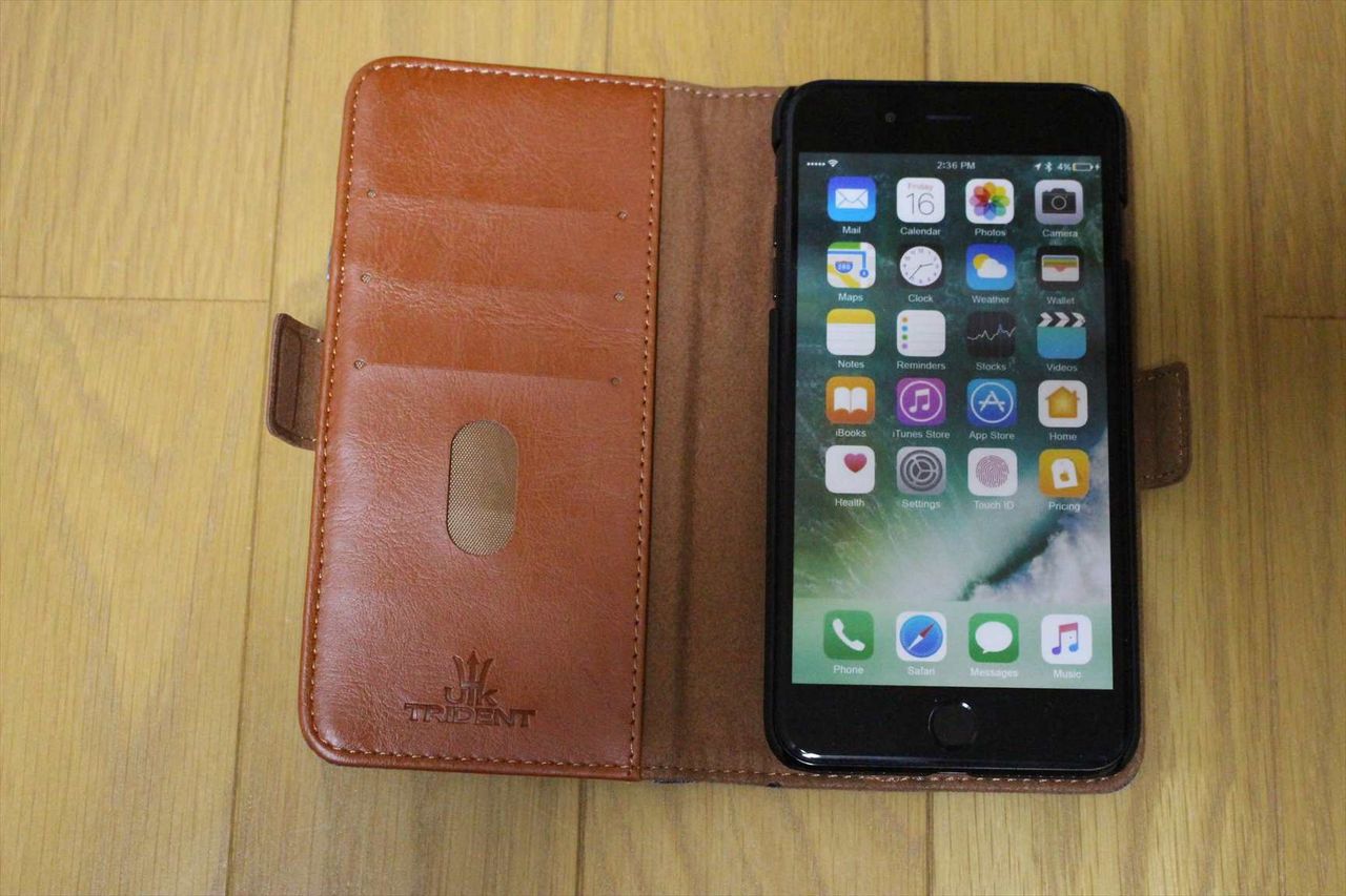 内側は一般的なフリップケースで、カードを3枚収納できます。