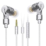 AIKAQI ハイブリッドイヤホン 金属製 ステレオヘッドホン リモコン付き ハンズフリー 通話 重低音 HIFI 高音質 カナル型 イヤホン A04 シルバー