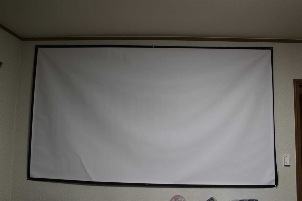 8畳の寝室の壁を使いましたが、この100インチサイズだと、部屋が狭いです。