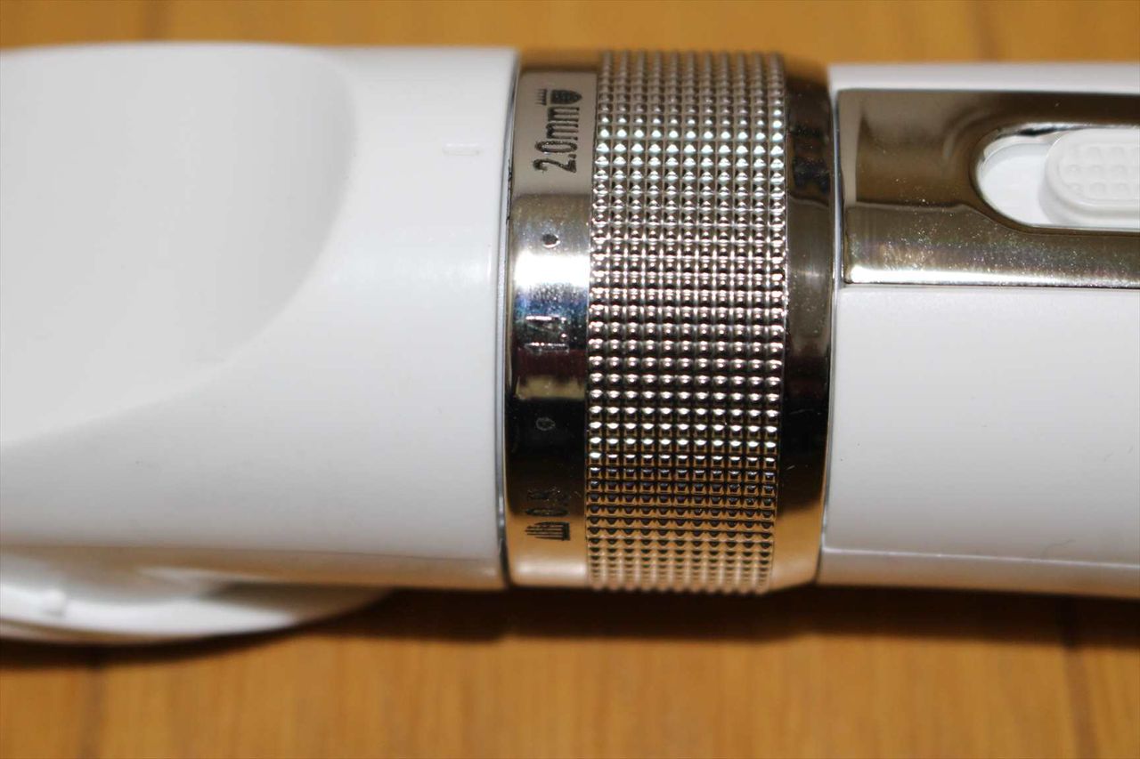 付属のアタッチメントを使わなくても、バリカン本体で、0.8ミリから2.0ミリまで調整ができます。
