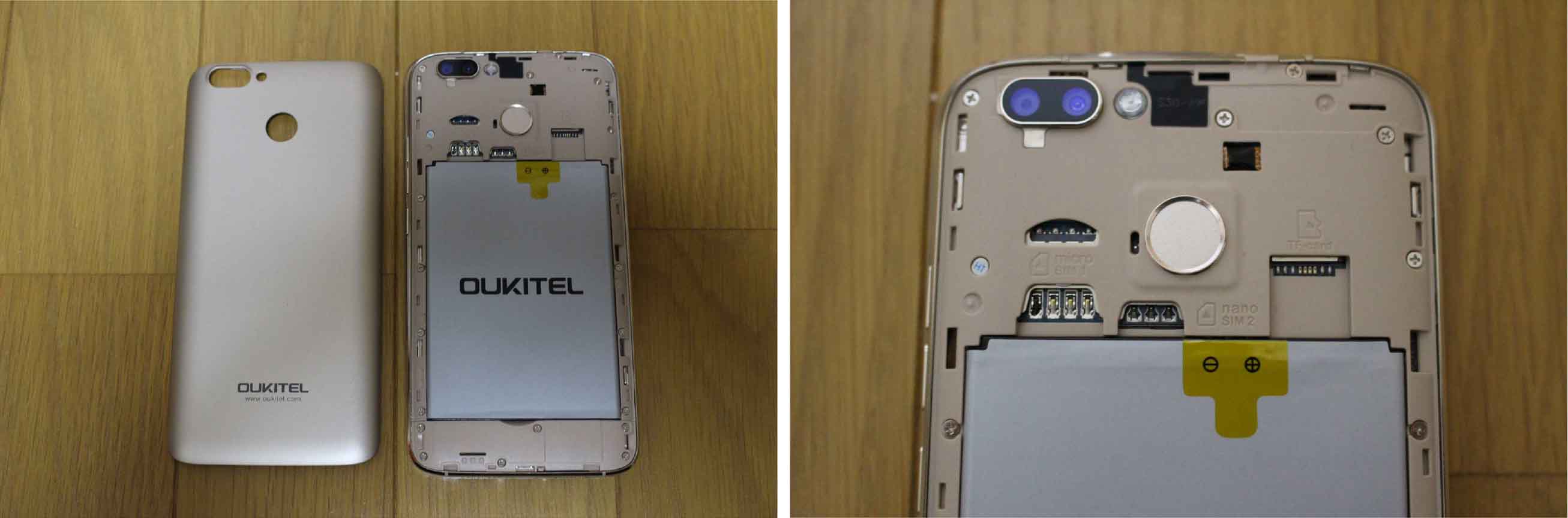 リアパネルを外すと、SIMスロットとMicroSDスロットが現れます。
