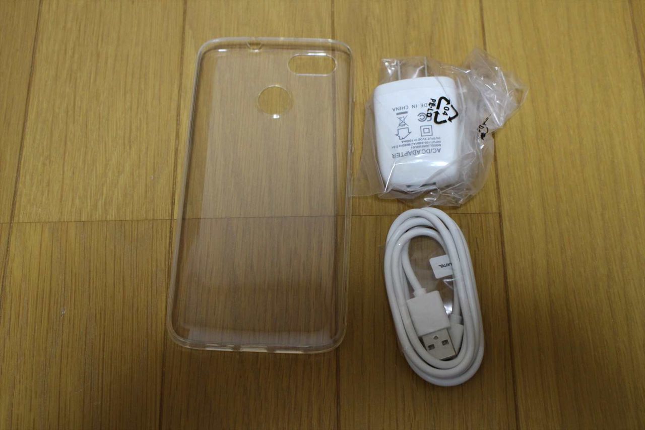 付属品は、TPU素材のケースと、充電器と充電用のケーブルです。