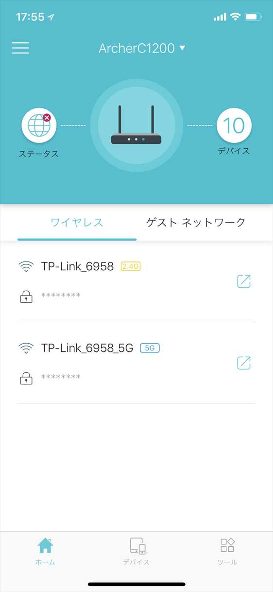 パソコンのブラウザからでも設定はできますが、スマホアプリ「Tether」でも簡単に設定が行えます。