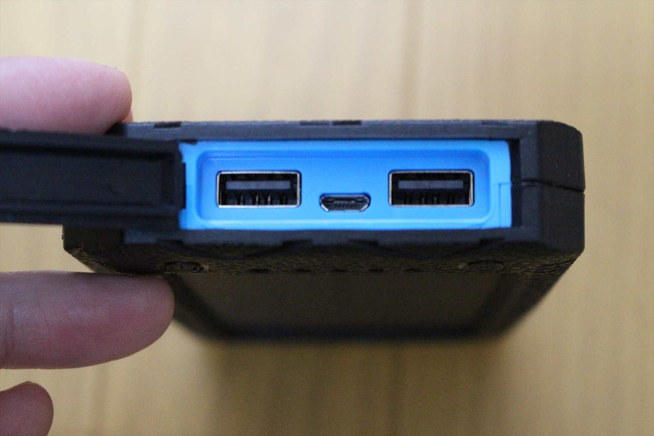 防水・防塵・耐衝撃の仕様で、充電用のポートもしっかりと閉じられています。