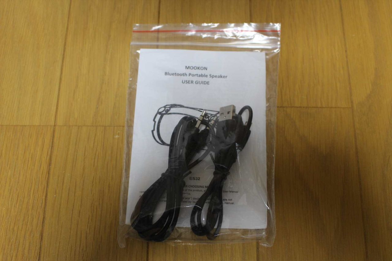 オーディオケーブル、充電用のMicroUSB-USBケーブルが付属しています。