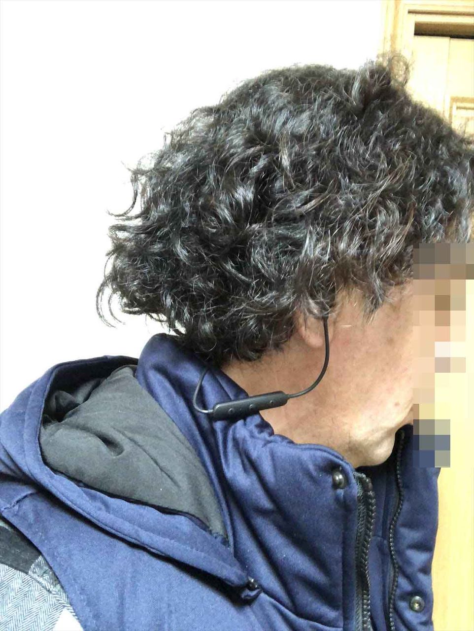 ケーブルは、首の後ろに回した方が見た目はスッキリとします。