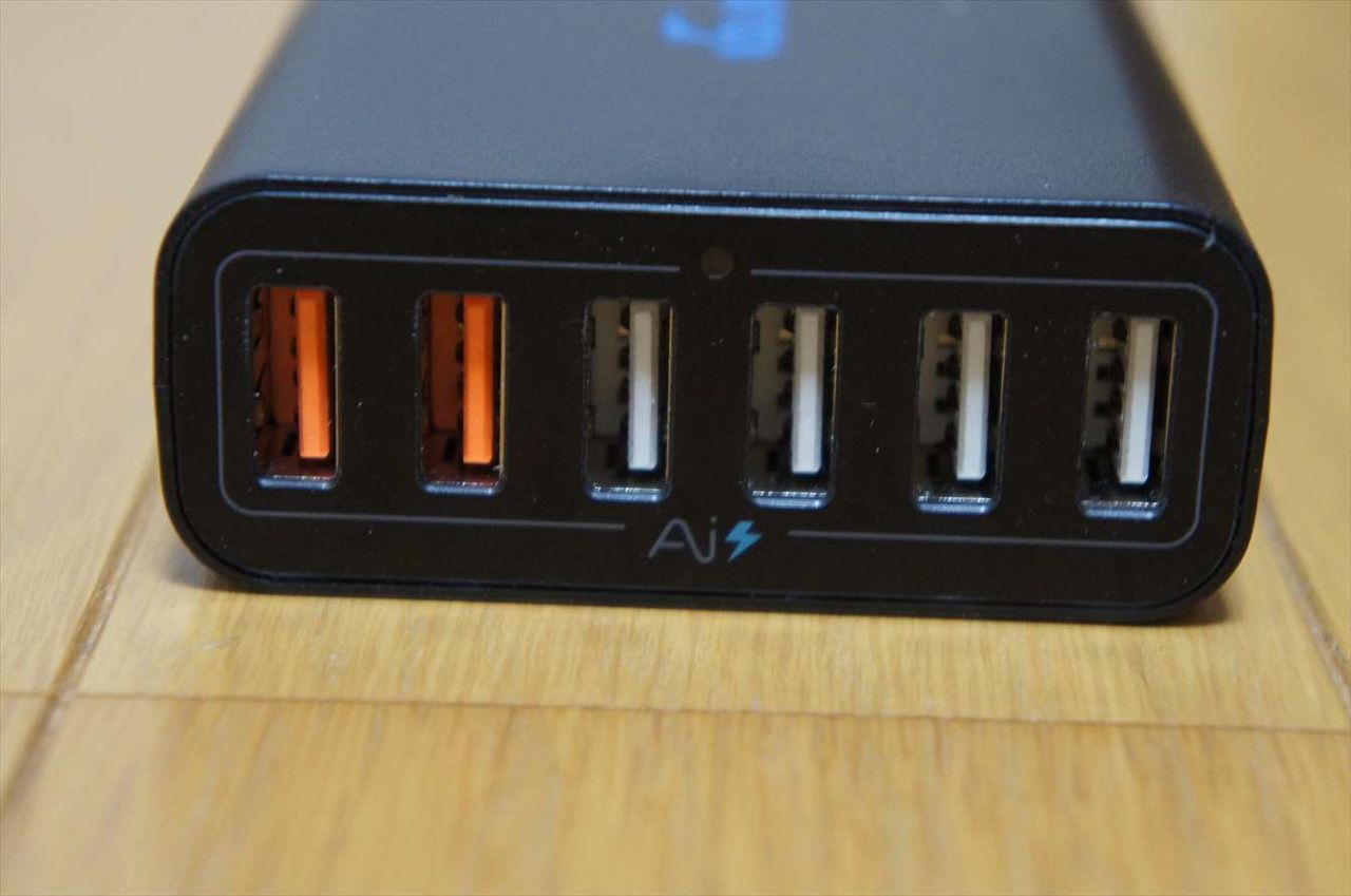 6ポートを搭載して、オレンジのポートは、Quick Charge 2.0に対応しています。